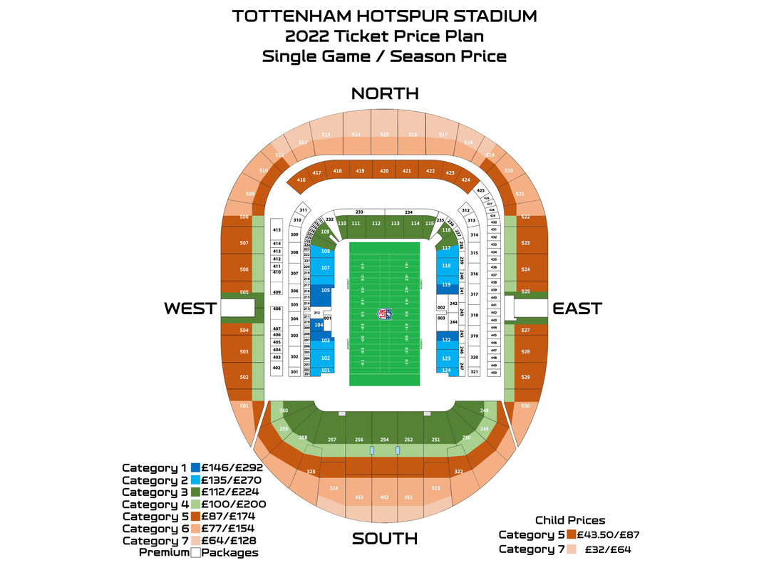 No sé si sabré adjuntar la imagen de los precios, pero de cada sector vienen dos precios, uno por un partido y el otro por el abono de los dos que se juegan en el campo del Tottenham.
